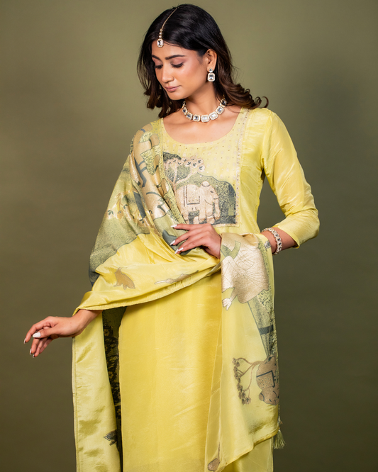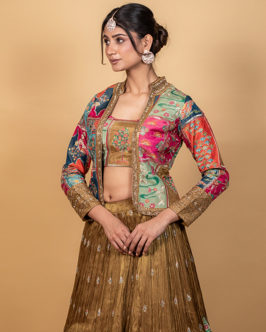 Golden Tissue Lehenga With Heritage Zardozi Work