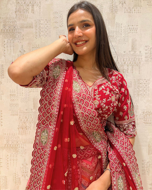 Aagman ~ Red Zardozi Bridal Lehenga With Handcrafted Detailing