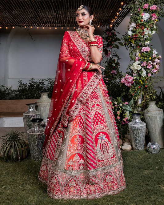 Aagman ~ Red Zardozi Bridal Lehenga With Handcrafted Detailing