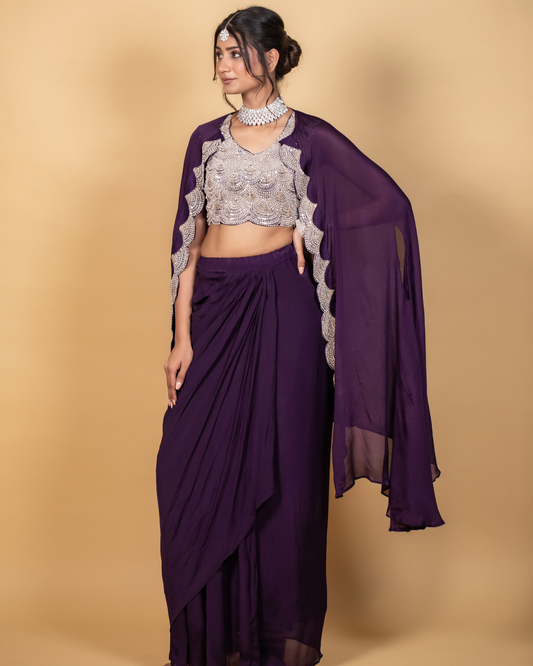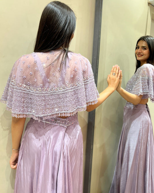 Tara Lilac Glow Indo-Western Cape Dress