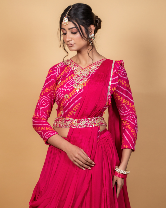 Gulaabi Bandhej Blossom Saree