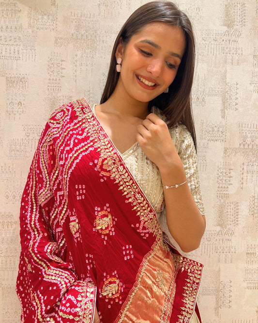 Handcrafted Red Lehenga With Bandhej Charm