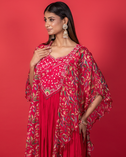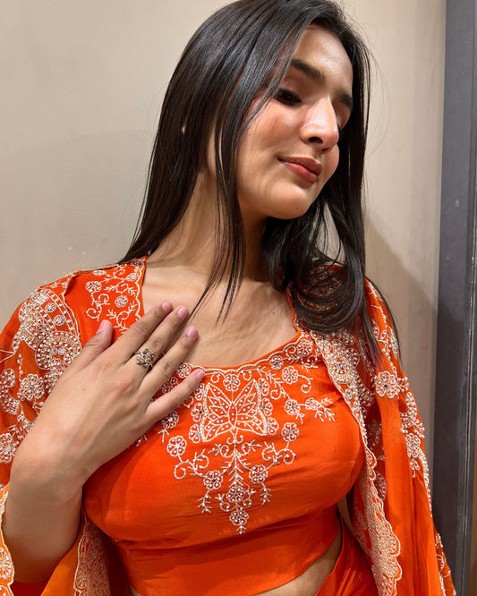 Tangerine Cape Style Indowestern